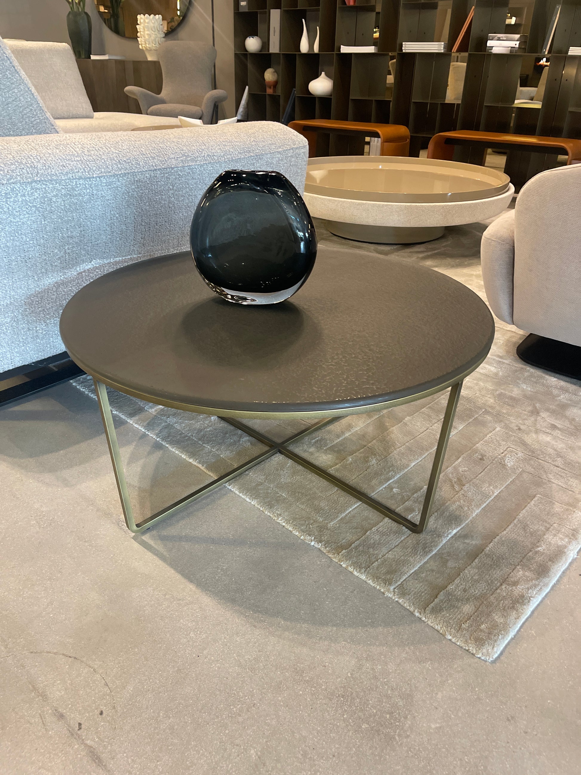 Handcrafted in Italy, the Piktor’s circular form and clean geometry make it versatile as either a coffee or side table. The combination of warm metallic tones and minimalist design creates a luxurious focal point suited for both residential and commercial interiors.